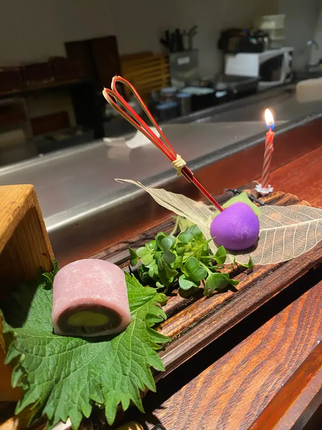 🍡 甜品: 好有驚喜!係和菓子、紅豆卷物同埋水信玄紙配黑糖豆粉!男友生日仲有蠟燭,生日感滿滿!