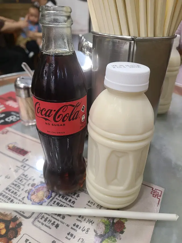 低糖豆漿係瓶裝,夠凍,都附上紙飲管。