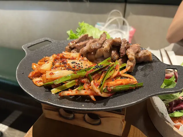 豬頸肉燒得香到唔得了,肥瘦分明,一咬落去係油脂同肉香一齊爆開 💥,唔會韌,反而有嚼頭。配埋辣泡菜、蒜片、生菜 🧄🥗,自己包自己鍾意嘅組合,一啖拎起嚟食落去,係韓國街邊燒烤店嘅味道,但加咗一種乾淨嘅精緻感 🛋️。