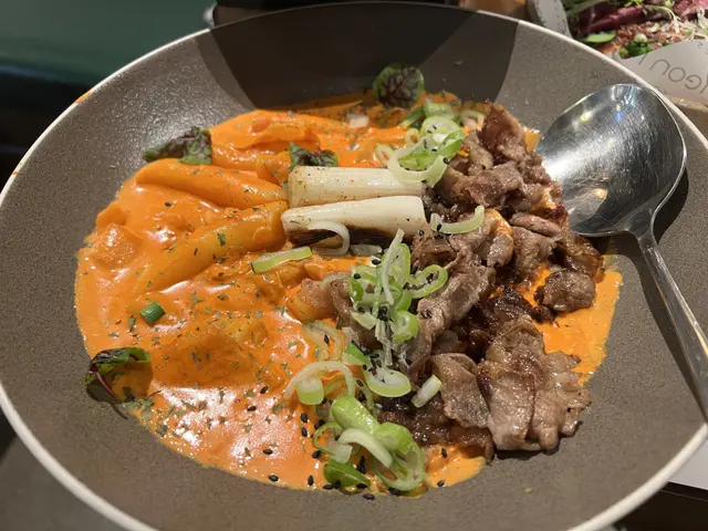 年糕煙韌,牛肉煎到香脆,兩樣都吸哂 creamy 同微辣嘅 rosé 醬汁🧈🌶️。醬汁濃郁得嚟唔膩,辣中帶甜,甜中又有牛香 🐄🔥,拌飯應該會好勁。食到中段,你會發現自己其實係笑住咁食緊 😊。