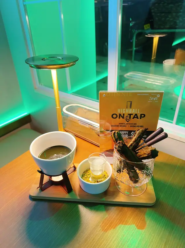 我哋叫咗泡菜蜜燒風琴豆腐($58)、麻婆豆腐墨西哥脆片($98)、開心果香烤法式小羊架($238)、脆西班牙風乾風腿凱撒沙律($128)、雙色番薯條($68)同埋開心果吉拿棒朱古力火鍋($128)