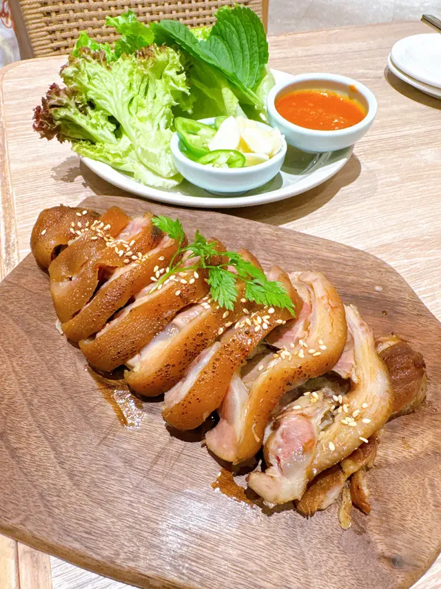 切片嘅豬手,膠質滿滿又不膩口,滷汁鹹中帶甜,用生菜夾豬手,再蘸上韓式辣醬包裹住一齊食,清新又解膩!