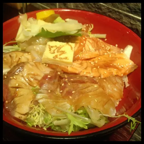 由於寶寶偏過火炙過的刺身,所以點了這個丼的刺身全是稍為燒過的。