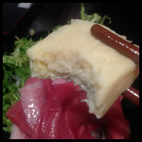 吞拿魚蓉切得很細滑,個人喜歡將它和飯粒及溫泉蛋汁拌勻,再加點醬油提味。每一口都是一個享受。