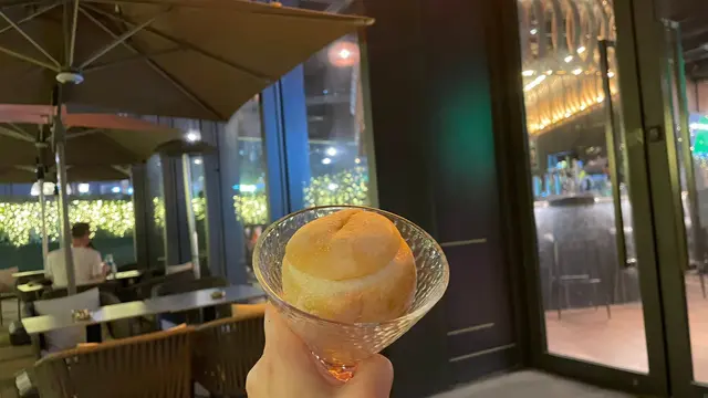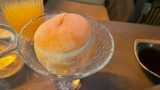 最後,我們品嚐了桃味雪葩這道甜品。雪葩口感細緻綿密,桃子的清新果香與雪葩冰涼口感相得益彰。這道甜品為整個用餐過程畫上了完美的句點。