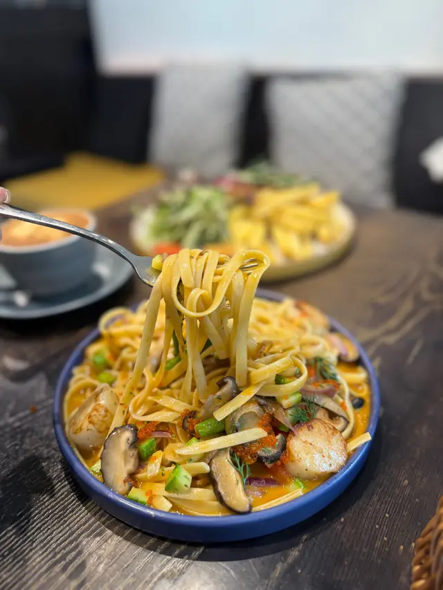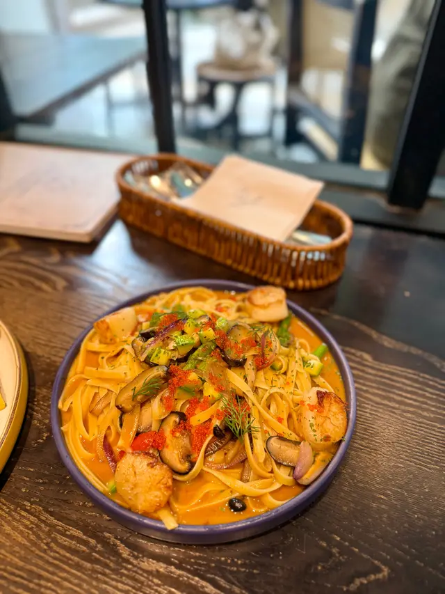 🔸Pan fried Scallop Lobster Sauce Linguine w/ Sakura Shrimp $148