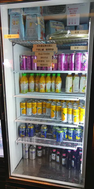 凍櫃的飲品選擇也不遑多讓, 汽水, 果汁和啤酒, 全是自由選擇, 當然也照顧不喝凍飲的朋友, 有熱茶供應。