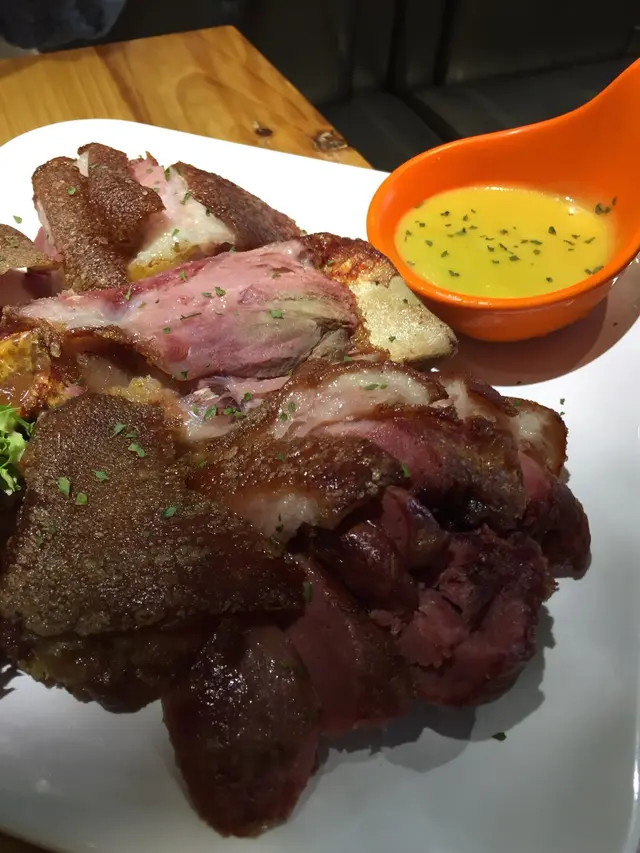 德國咸豬手超大隻, 肥瘦適中, 價性比極高. 入口皮脆肉嫩, 配上蜜糖芥末汁, 微甜不辛得來消減油膩.