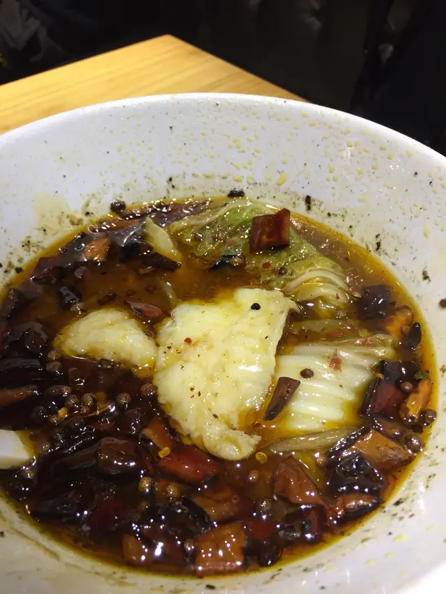 川味水煮魚一上菜, 麻辣香氣四溢. 魚肉入口鮮嫩滑溜, 同時給舌頭帶點麻辣感覺. 當中還有薯粉, 晶瑩剔透且有咬口.
