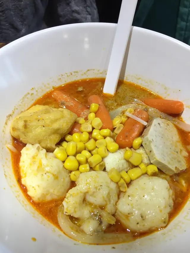 喇沙湯麪追加了墨丸及吉列珍寶蝦. 先來說說那個溂沙湯底, 顏色鮮艷奪目, 入口濃郁鮮蝦味, 配上新鮮蔬菜包括粟米粒, 金菇及豆卜更顯清甜. 其次, 配料魚腐吸滿了蝦湯, 異常香口甜美. 墨丸爽口彈牙. 吉列珍寶蝦鮮甜結實.