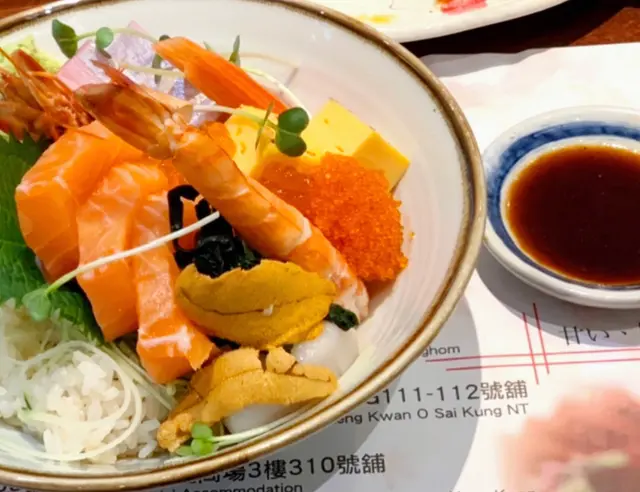 德美海膽魚生丼: 剌身係厚切既,很有口感,帶子鮮甜美味,三文魚好新鮮,海膽都好正😋