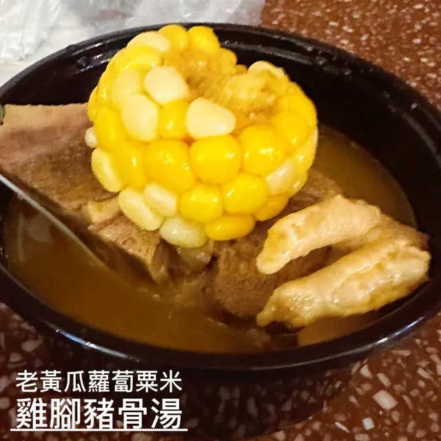 湯料有老黃瓜、紅蘿蔔、粟米、雞腳、豬骨