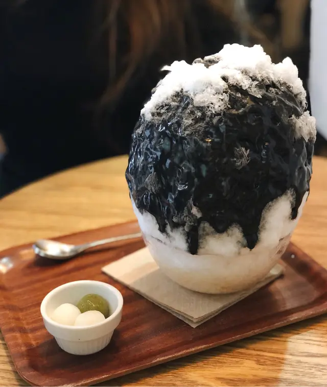 𓇬 這次到訪我們選擇了黑芝麻刨冰加配白玉。綿密的刨冰搭配上滿滿的黑芝麻醬,黑芝麻醬味道濃郁,而且份量慷慨,搭配刨冰吃起上來就像在吃冰的黑芝麻糊,喜歡黑芝麻的人絕對會愛上!吃到一半,發現刨冰裏面還有黃豆粉、蜂蜜和消化餅碎,和黑芝麻醬搭配起來也意外地合拍!裏面的餡料令到整個刨冰層次升級,口感豐富。整個刨冰的份量頗大,吃到最後感到有一點點膩。加配的白玉另外用了小碗裝上,有三小粒,口感煙韌。