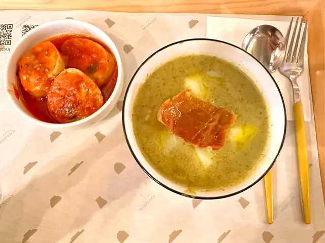 ✨湯品主要以西蘭花打成蓉,加入奶/豆乳調色,所以望落帶少少creamy,仲有好多薯仔塊🥔店員最後喺湯面放入巴馬火腿🥓香草、檻欖油裝飾,飲湯同時補充水溶性纖維👍🏻