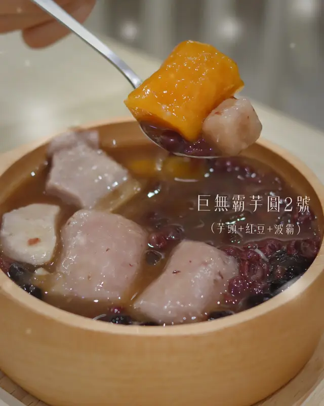 真・比普通芋圓大3倍!芋圓控必點~口感超Q彈💜 搭配養生黑糖桂圓紅棗湯,甜度剛好還能暖身,紅豆煮得綿密起沙,波霸黑糖味濃郁,層次豐富到犯規!
