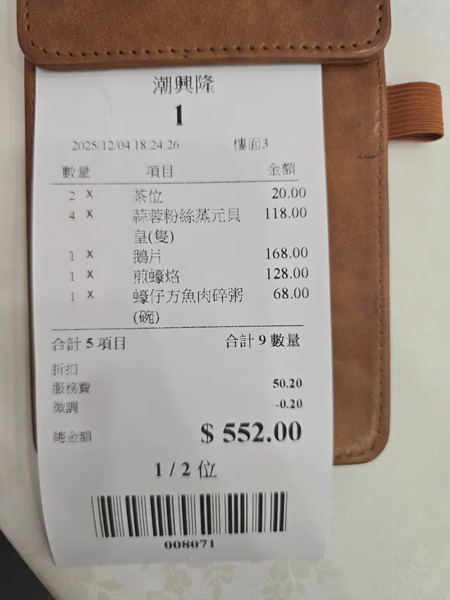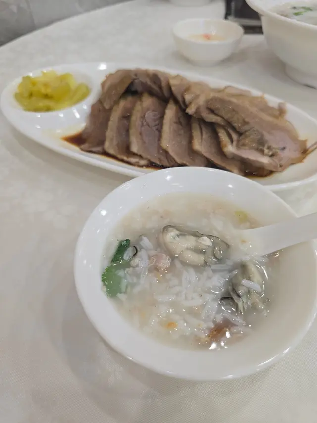 今次叫咗蠔仔方魚肉碎粥、汕頭煎蠔烙、滷水鵝片,仲有買二送二嘅 蒜蓉粉絲蒸元貝皇。