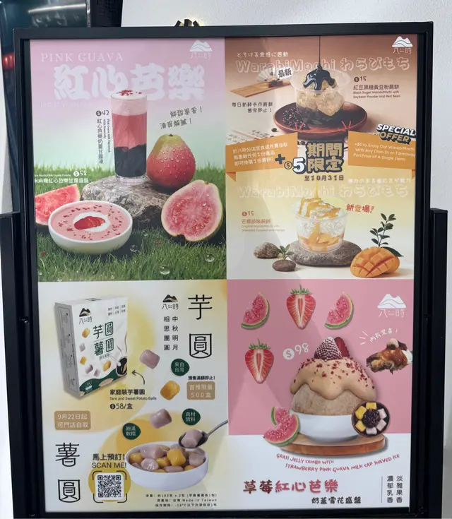八時紅心芭樂全新推出!+ 惠顧任何甜品或刨冰,加 HK$5 即可換購八時手作蕨餅乙份(原價 $15),可選口味包括紅豆黑糖黃豆粉/芒果椰絲原味。優惠至 10 月 31 日止。
