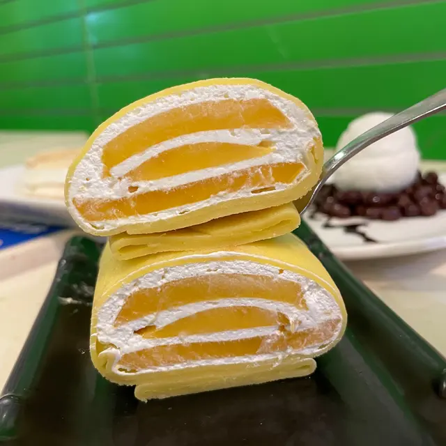 呢度招牌item係芒果班戟,班戟皮蛋香重,唔會太厚帶點煙韌口感