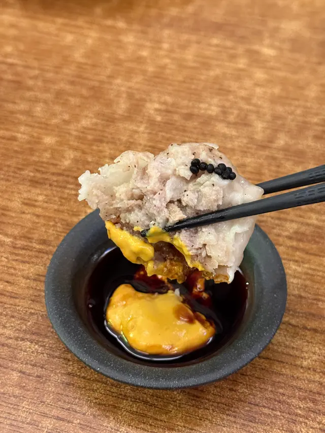 用上阿古豬做燒賣 加上黃芥辣 味道好吸引