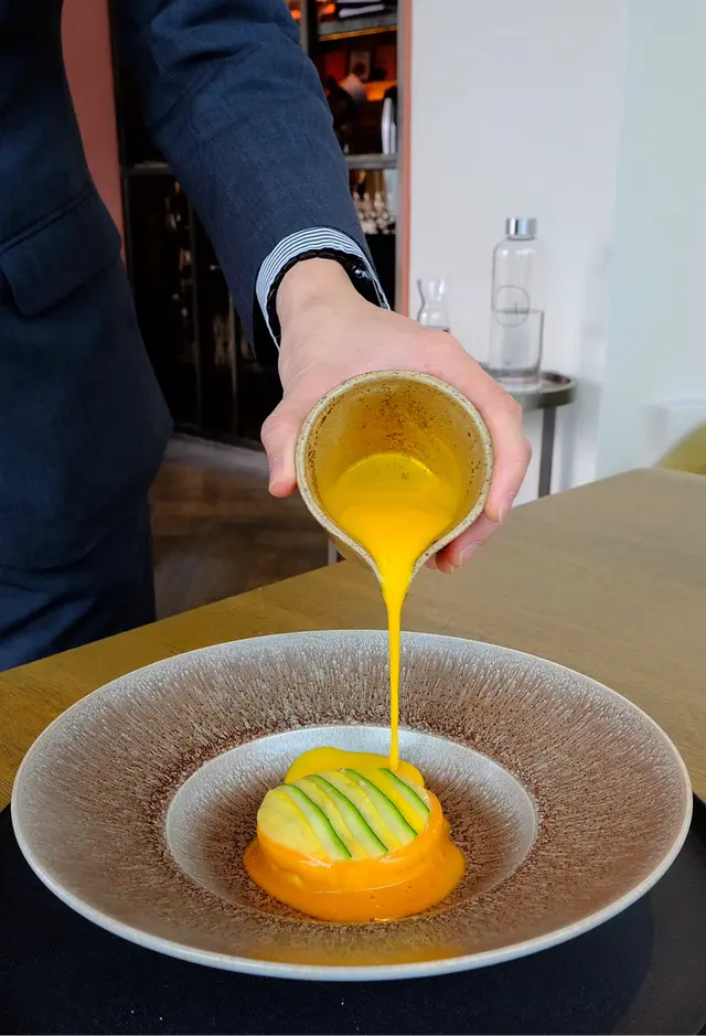 呢道菜用左法國藍龍蝦同日本南瓜蓉。龍蝦肉質爽甜,配細滑嘅魚Mousse,南瓜蓉自然嘅甜味,平衡得幾好,令龍蝦嘅鮮味更突出