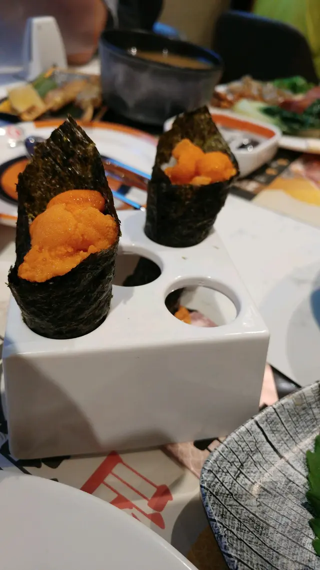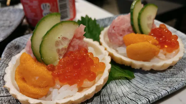 放題食嘅海膽都有咁鮮嫩嘅橙色已經夠吸引,入口仲要無腥苦味,而係微微嘅鮮甜,正!海膽魚籽拖羅蓉最中餅,睇完名加相都唔係好清楚咩係最中餅(之後上網查下,原來最中餅係日本嘅人氣甜點),上枱時,驟眼看都仍然唔知係咩嚟,仲懷疑個似碟仔果塊嘢食唔食得。輕輕一咬,原來真係食得嘅,口感似雪糕筒果種威化,但無果種甜味,配埋海膽、拖羅蓉食,感覺更突出了刺身嘅海水鮮味。