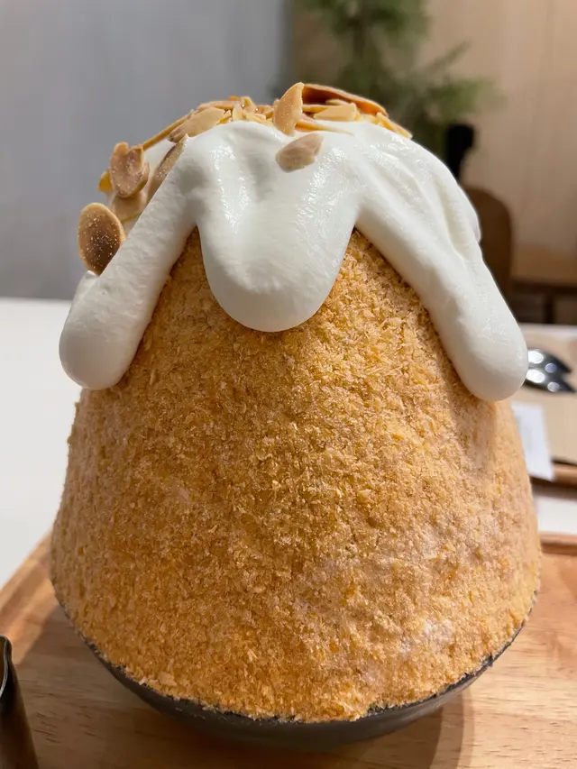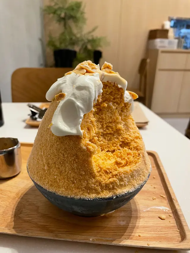 Last time I tried the mango sticky rice, and this time I decided to try the Thai milk tea shaved ice. The ingredients inside the shaved ice were grass jelly and toast. The toast was just plain bread with no flavor, and the grass jelly was quite chewy but lacked the typical grass jelly taste. Overall, the Thai milk tea flavor wasn't very strong; although there was a Thai milk tea sauce, it was a bit too sweet. :(