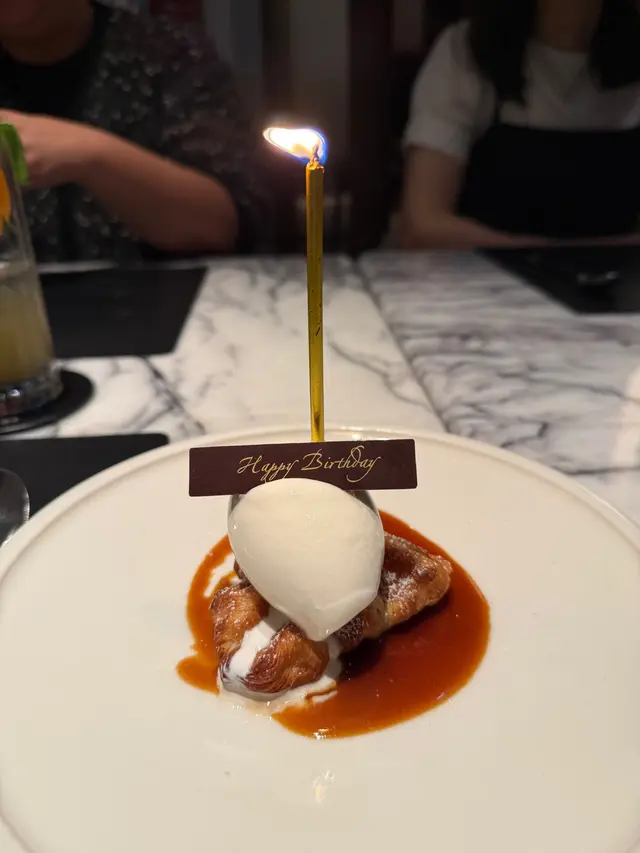 生日驚喜,甜品又係好味。餐廳細心為主角準備了生日甜品,不但味道出色,賣相也相當精美。仲有細心為主角影即影即有,俾大家留念。這種貼心的服務讓整個用餐體驗更加完美,也體現了餐廳對客人的重視和用心。甜品本身製作精良,甜度適中,口感層次豐富,為這頓豐盛的法式大餐劃下完美句號。