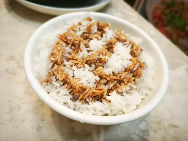 熱辣辣白飯淋上融化豬油, 再加啲豉油撈勻嚟食, 簡單但好香, 豬油香氣充滿成個口~