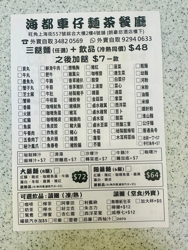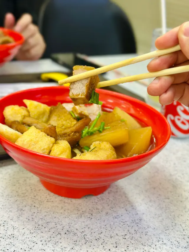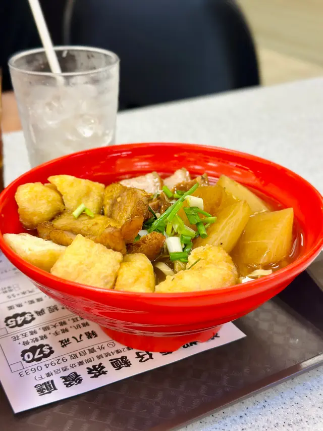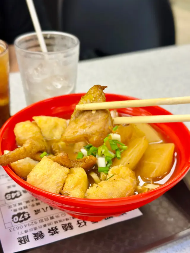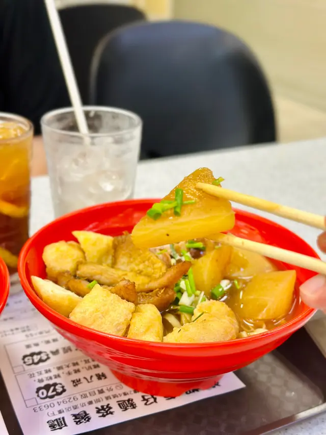 另外,我和朋友還選了四餸車仔麵,三餸為經濟配搭,我升級至四餸,選了蘿蔔、豆卜、豬腩肉和香茅豬扒,配搭沙嗲汁及粗麵。豬腩肉入味軟腍,入口即化,口感一流。蘿蔔外表有咬口,內裏軟腍且入味,而香茅豬扒浸湯後軟硬兼備,香茅味道突出。粗麵帶有微蛋香,配上沙嗲汁的濃郁香氣。