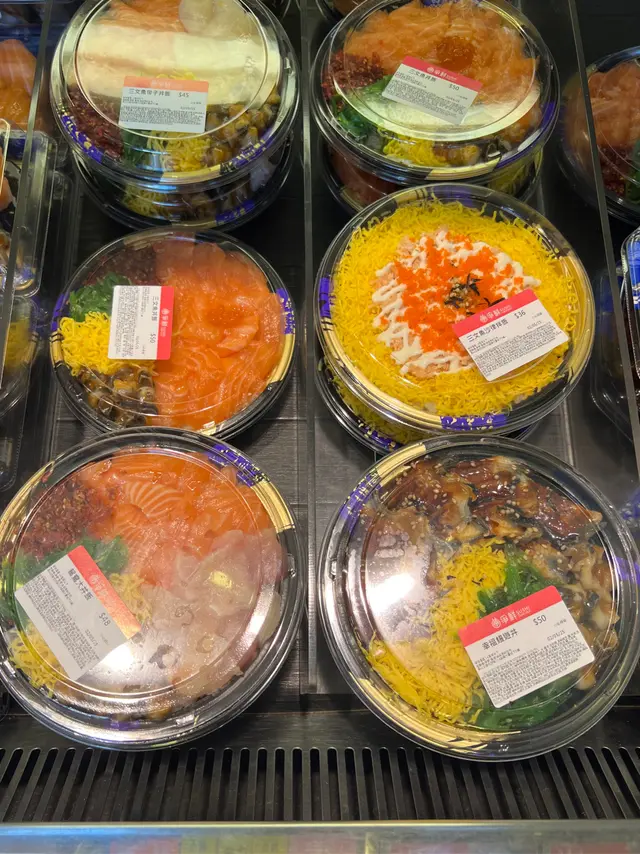 爭鮮外帶壽司有好幾款飯 $36 - $55,包括:三文魚帶子丼飯、三文魚丼飯、鴛鴦大丼飯、三文魚沙律拌飯、幸福鰻遊丼、鯖魚丼飯同三文魚親子丼。