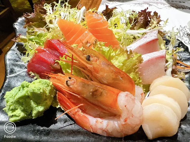 😋五色刺身(三文魚2片、帶子4片、油甘魚2片、赤蝦2隻、赤身2片)