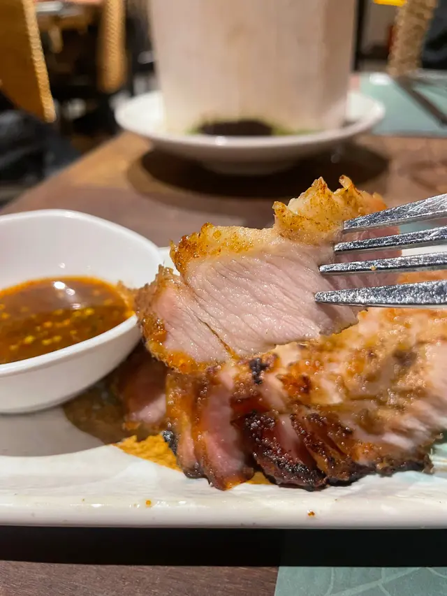 燒得好香,肥瘦適中,點埋個有少少辣的醬汁真係好開胃。