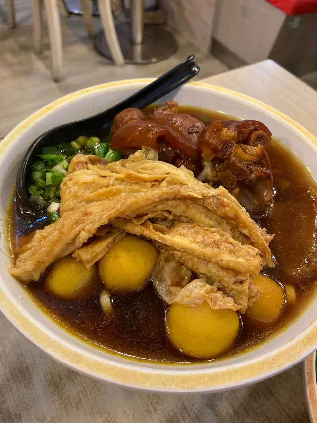 我點左粗麵配腩汁,加少少特製沙嗲醬,呢個係我最鍾意嘅湯底配搭,粗麵底麵質爽口,唔會煮到稔曬,配菜揀左通菜、豬紅、冬菇、魷魚、牛肚、牛筋,想講佢全部都勁足料,如圖所見,超級大碗,賣相勁吸引,冬菇煮得好夠腍同入味,豬紅唔腥,魷魚清爽,飲品我就推薦柑桔少冰,係呢個咁乾燥嘅天氣潤喉,我哋再嗌咗個腐乳通菜返嚟食,好掛住呢種車仔麵嘅原始味道,媽子則叫咗粗麵配腩汁,通菜、枝竹、豬皮、豬手、咖喱魚蛋,特別豬手同埋咖喱魚蛋都真係出色,豬皮洗得好乾淨,魚蛋彈牙之餘個咖喱辣到啱啱好,飲品佢就鍾意百香果少冰,同樣都係健康之選💕