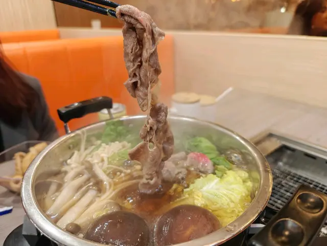 入到去d位好大,坐得都幾舒服,地下都好乾淨,去的時間比較早,人未算好多,環境好唔錯,店員好有禮貌咁開爐同擺低左個壽喜燒湯底,食物係掃qr code order的。我地即刻order左d靚肥牛食下個壽喜燒。壽喜燒的味道都唔錯,當然唔會有專門做壽喜燒的店鋪咁好味,而其實呢個只係提供多一個口感俾我地,主菜係燒肉,過下口癮係唔錯的!