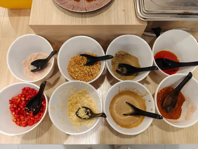 外面有個擺得好整齊好乾淨的配料區俾大家去調味。店員會不時過黎清潔個醬料區,睇落都覺得好舒服,小心翼翼咁調味,免得整骯髒,香港人確實有素質。