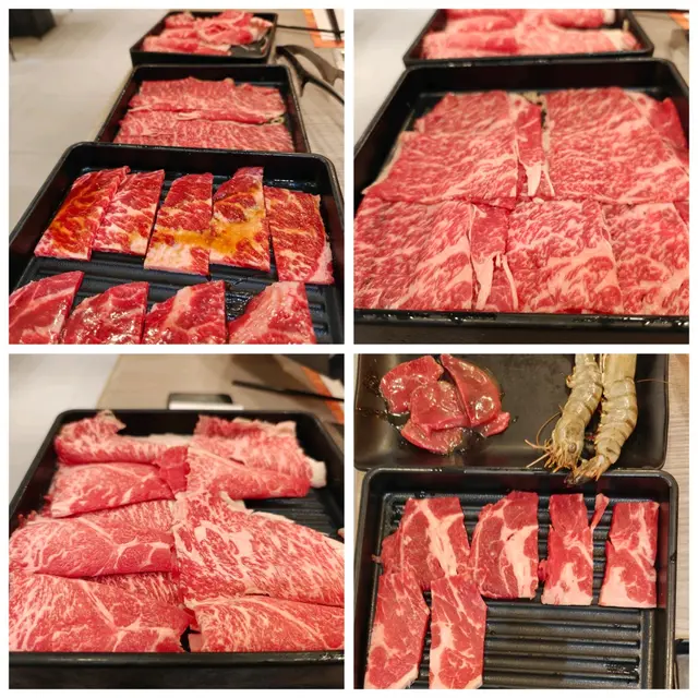 之後去到戲肉,既然係食放題,緊係瘋狂叫左第一輪先啦,距係你點幾多就上幾多果種,唔會孤寒。上到我地都覺得有d尷尬,因為真係一次過黎好多碟,好彩距張檯夠大,都可以擺得曬。D肉的油脂分佈好靚,食落好有牛味,而且佢唔會雪到硬曬果隻,放上爐轉頭就食得。雖然個爐唔算好大,不過佢一張檯有兩個爐,每個爐只係serve兩個人,唔使擔心三五知己速度唔夠食唔飽。而且火力好大,一個人好容易handle,反而我覺得好正。