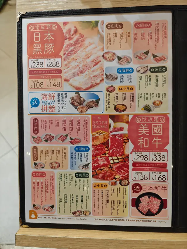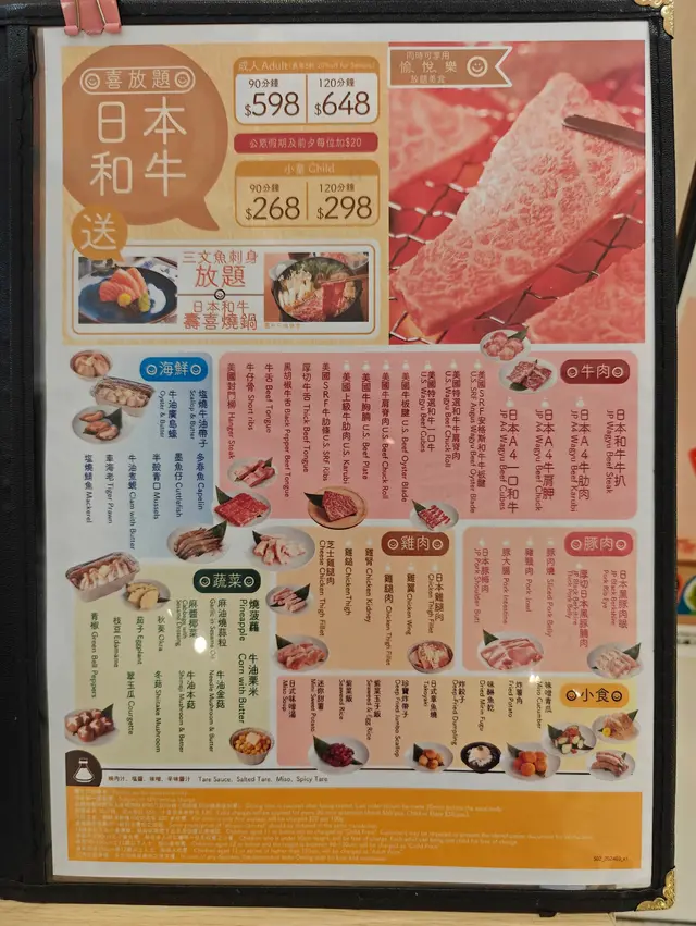兩個鐘頭,靚牛唔吝惜咁任你點任你燒,環境舒適,服務態度好。真心覺得呢間燒肉做得好唔錯,比起某d連鎖大牌要排個幾鐘頭隊去食,又貴又趕頭趕命咁,呢間燒肉真係唔錯,值得一試。希望呢個食評可以幫到十五十六的你參考到啦!