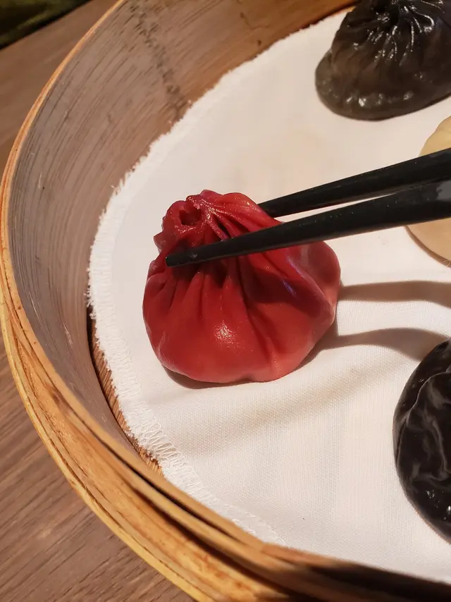最記掛這款小籠包,一籠有八款不同味道 : 原味、人蔘、蟹粉、鵝肝、黑松露、川味、芝士、蒜香;以不同顏色區分;小籠包標榜每粒25克、18摺、粒粒飽滿、大細均等,湯汁甜而不膩。