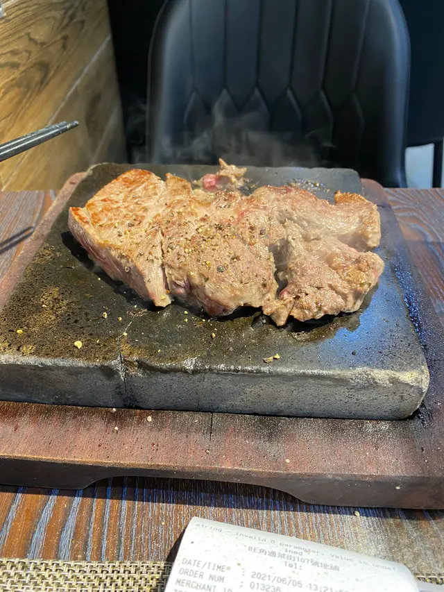而主菜都要等左一陣先上菜,佢既石板燒到好熱,然後牛扒可以自己決定幾熟,想熟啲就燒耐啲,而牛扒既份量都大份,足夠一個中午飯既份量,絕對係夠飽既👍🏻但牛肉既質地就比較韌左小小,有幾舊係完全𡁻唔開😂呢個就一般啦,可能係揀左最平既餐既掛😂
