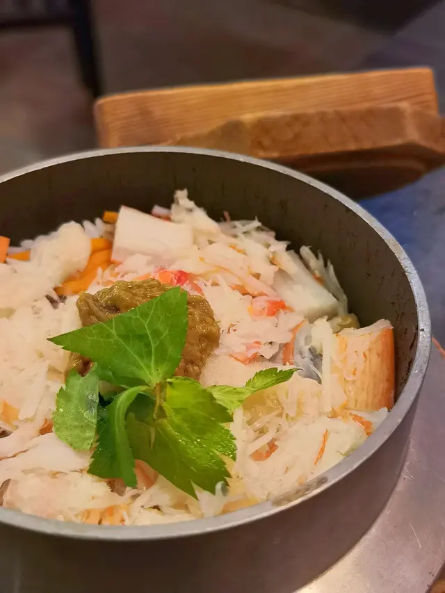 飯上面放大量的蟹肉再加上蟹膏,下面的飯本身加了腐皮,紅蘿蔔,香菇等材料,單吃就已經很夠味,配上大量的蟹肉,令鮮味更突出!