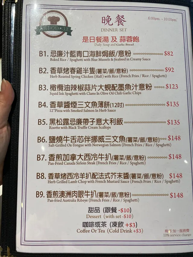 沙律、腸、豬扒、雞扒、雞翼、意粉、餐湯、蒜蓉包仲包野飲!