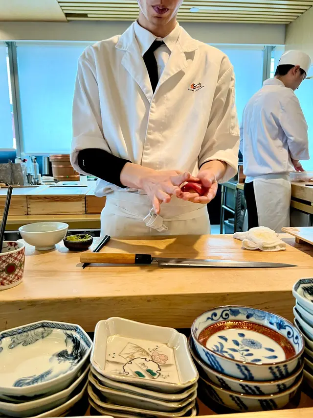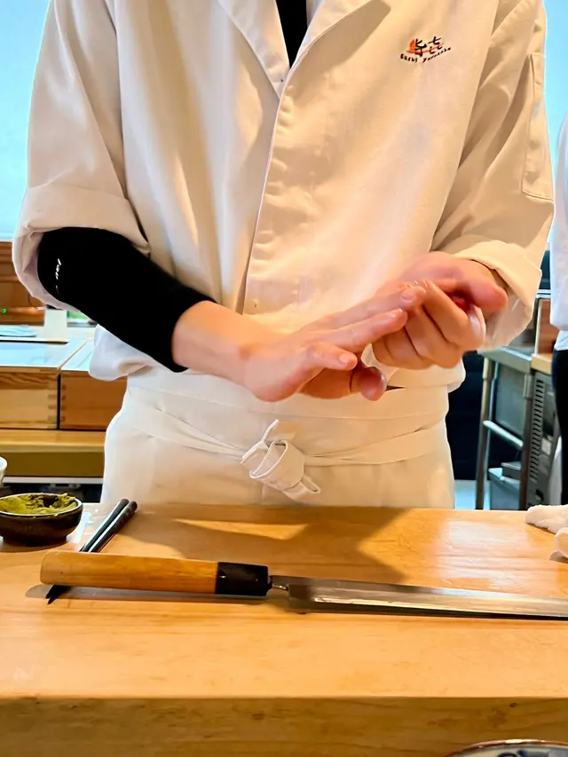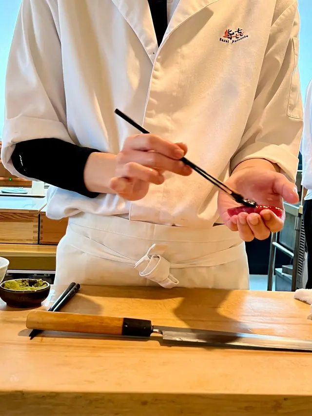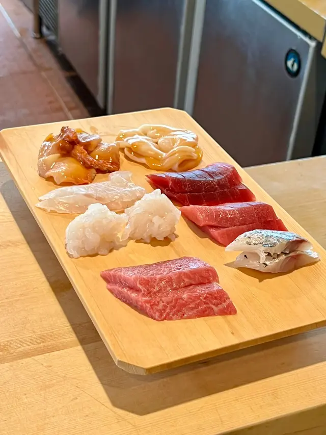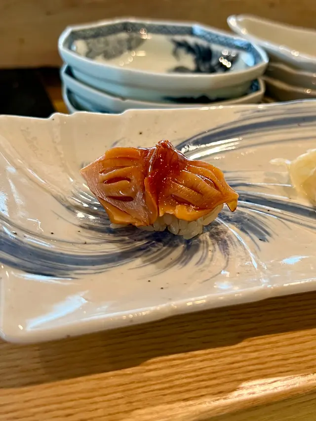 赤身輕淺漬醬油,味道鮮甜,口感爽彈,質地較為脆嫩。