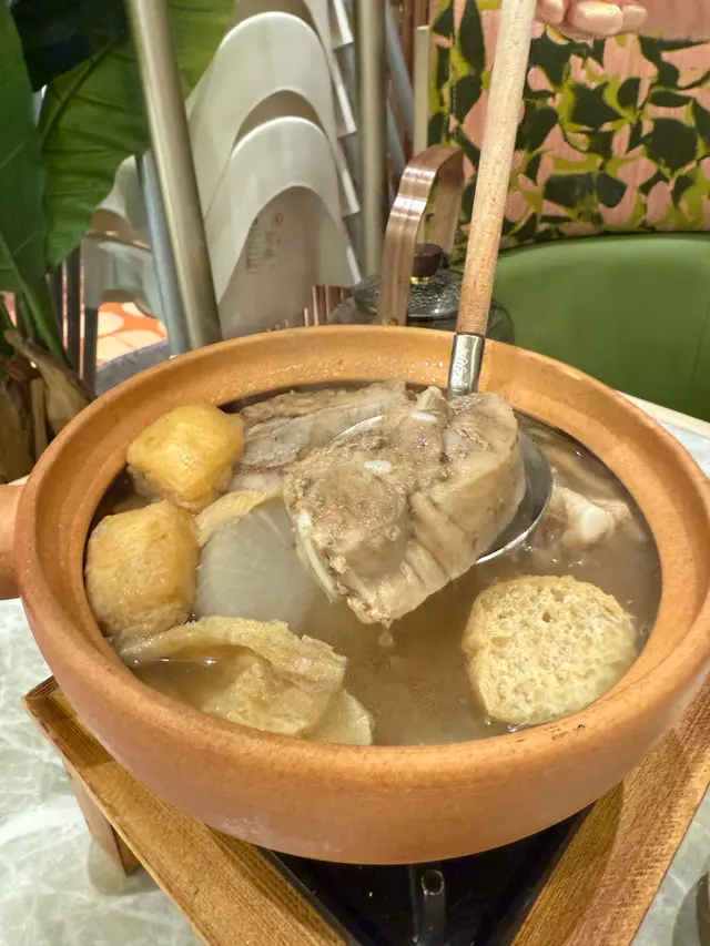 呢個肉骨茶用個鍋滾住夠晒熱,肉骨茶超足料,有一字骨、豆卜、蘿蔔,腐竹,一字骨肉質好腍,每一啖湯都充滿胡椒味,飲落好暖胃。