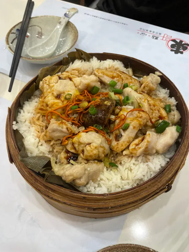 籠仔飯超值,$48滿滿一大籠,配的蒸雞雞肉滑嫩而且份量又多,飯吃起來還有荷葉香味,飯不會蒸得過火候,十分推薦,另外跟餐加$10配加大良雙皮奶,奶味濃郁入口香滑,值得點