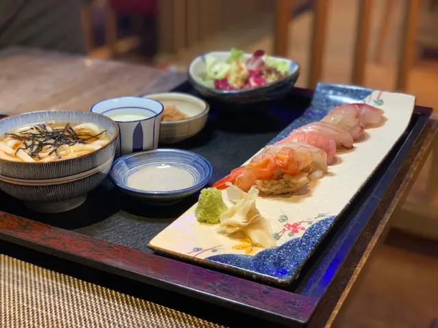 午市時段,套餐選擇蠻不少,而我當然心中早已選定廚師發辦 12貫壽司;另外,還點選了一客日本地雞定食,方便與友人一同分享。