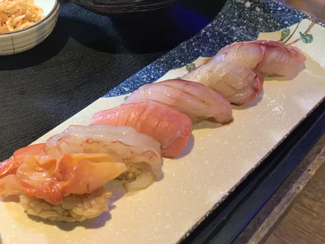 赤貝、牡丹蝦、拖羅、伊佐木魚、深海池魚、石立,各具特色,每一件都非常鮮味。
