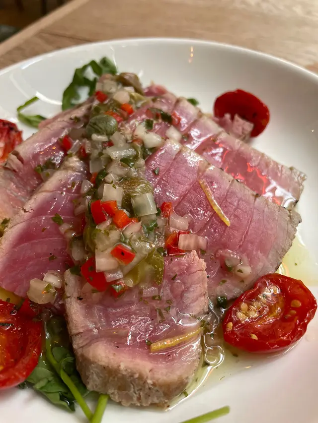 香煎吞拿魚,檸檬醬,水瓜榴,火箭菜