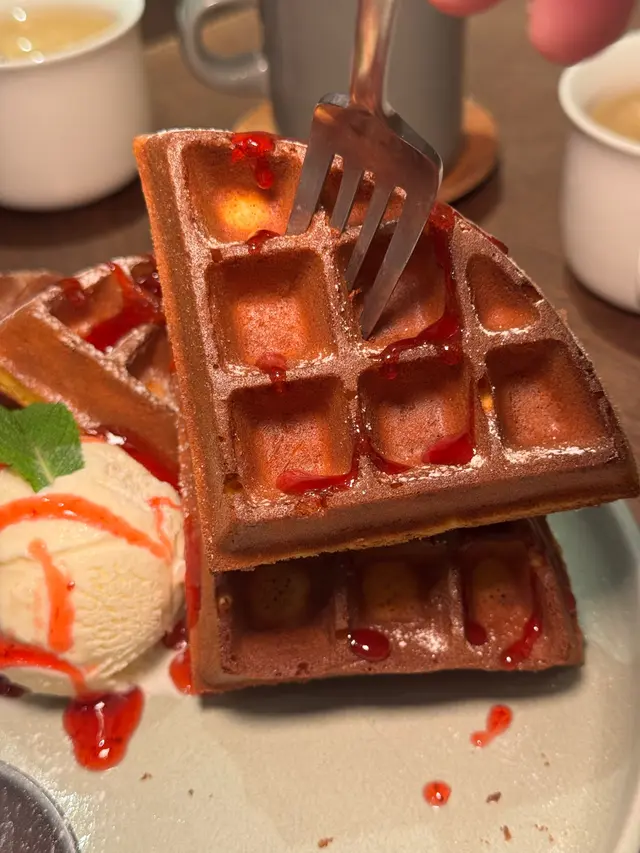- 窩夫好脆厚身又超脆,好有蛋香 ,雪糕texture夠曬rich