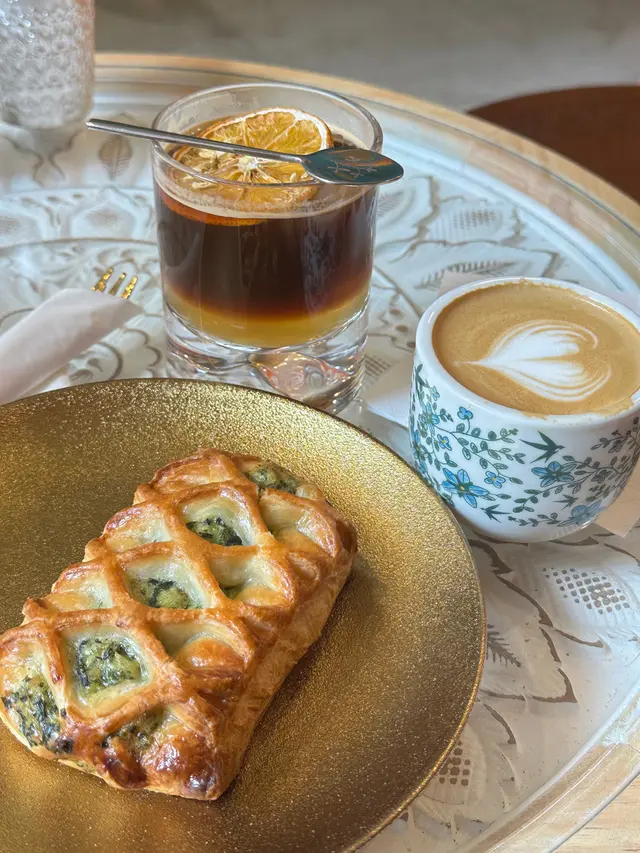 - 菠菜芝士酥🥟:這款點心的酥皮薄得像紙,切開後菲達芝士瞬間拉絲,濃郁的芝士搭配嫩菠菜和松子,鹹香卻不膩,完全停不下來。