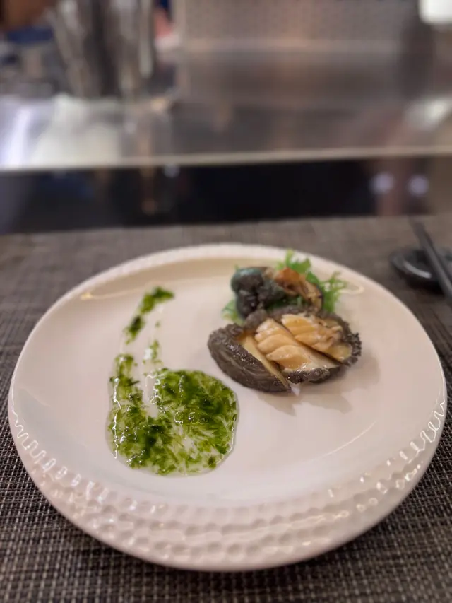 南非鮑魚肉質滑嫩,嚼勁十足,爽彈滋味。搭配少許醬汁提升風味。